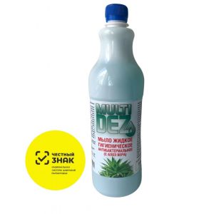 Жидкое мыло с антибактериальным эффектом, представляет собой вязкую однородную жидкость, от голубого до зеленого цвета с запахом применяемой отдушки (Алоэ Вера). Бережно очищает и дезинфицирует кожу.