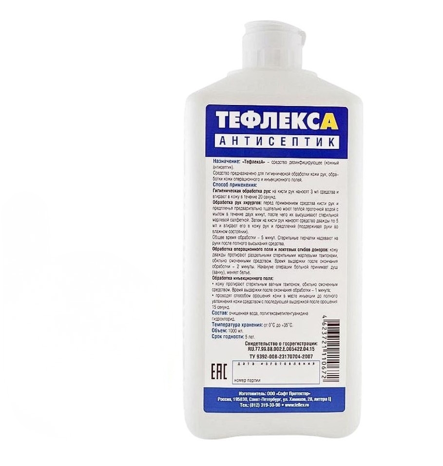 Кожный антисептик ТефлексА предназначен для обработки рук хирургов, операционных медицинских сестер, акушерок и других лиц, участвующих в проведении операций, приеме родов; локтевых сгибов доноров, а также для обработки кожи операционного и инъекционного полей пациентов лечебно-профилактических учреждений (ЛПУ): для гигиенической обработки рук медицинского персонала ЛПУ, медицинских работников детских дошкольных и школьных учреждений, учреждений соцобеспечения (дома престарелых, инвалидов), работников химико-фармацевтических, биотехнологических и парфюмерно- косметических предприятий, санаторно-курортных учреждений, предприятий общественного питания, объектов коммунальных служб (в том числе парикмахерских и косметических салонов и др.), а также для гигиенической обработки кожи рук и инъекционного поля, населением в быту.