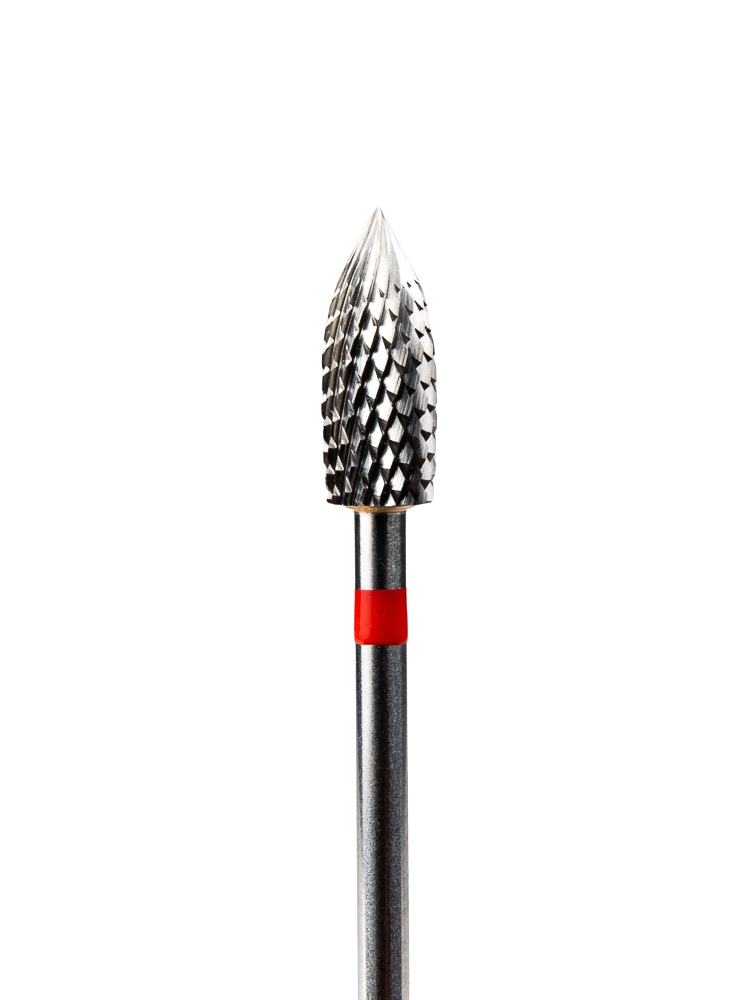 Применение в аппаратном маникюре/педикюре: Снятие гель-лака и геля. Коррекция искусственных ногтей. Закруглённый конус позволяет безопасно работать около кожи. Удаляет сухую кожу и заусенцы, особенно в труднодоступных местах. Хорошо справляется с твердой поверхностью ногтя, особенно на больших пальцах. Используется как точечный инструмент перед применением более крупной или грубой фрезы.