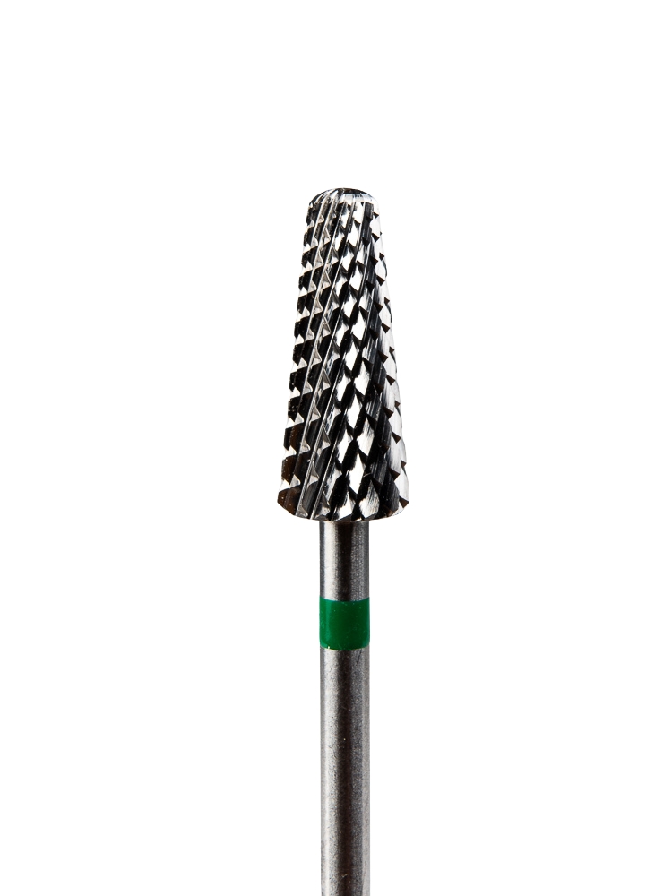 Применение в аппаратном маникюре/педикюре: Снятие искусственных покрытий: эффективна для удаления гель‑лака, геля, акрила и других твердых материалов с ногтевой пластины. Коррекция формы и длины: помогает быстро уменьшить толщину покрытия и подровнять форму ногтя. Обработка труднодоступных мест: благодаря форме конуса удобно работать в зонах под свободным краем или рядом с боковыми валиками. Удаление ороговевшей кожи: крупная насечка хорошо подходит для обработки натоптышей, мозолей и грубой кожи стоп. Выровнять поверхность кожи: форма и зернистость позволяют быстро сглаживать плотные участки кожи.