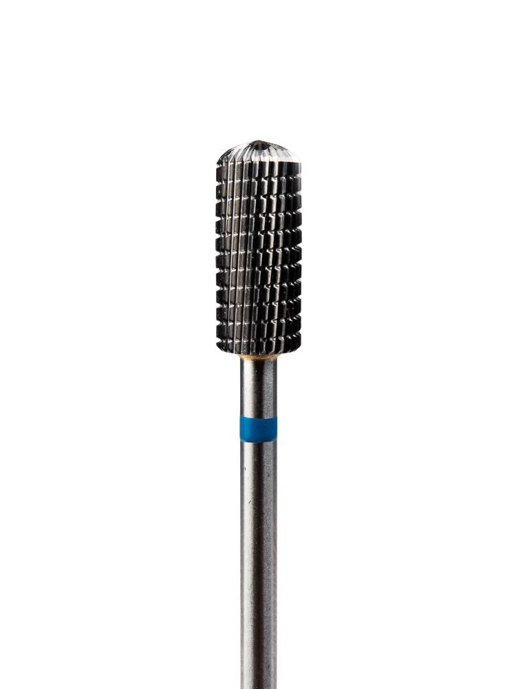 Применение в аппаратном маникюре/педикюре: Снятие гель-лака и искусственных покрытий: подходит для уменьшения толщины покрытия и первичного съёма материала. Коррекция формы и длины: хорошо работает по плоскости ногтя, выравнивая поверхность. Работа в труднодоступных участках: цилиндрическая форма с закруглением помогает аккуратно удалять материал рядом с боковыми валиками и под ноготь. Обработка плотной кожи стопы: фреза пригодна для сглаживания натоптышей, мозолей и ороговевших участков кожи. Подготовка кожи перед более детальной работой: эффективно уменьшает толщину кожного слоя.
