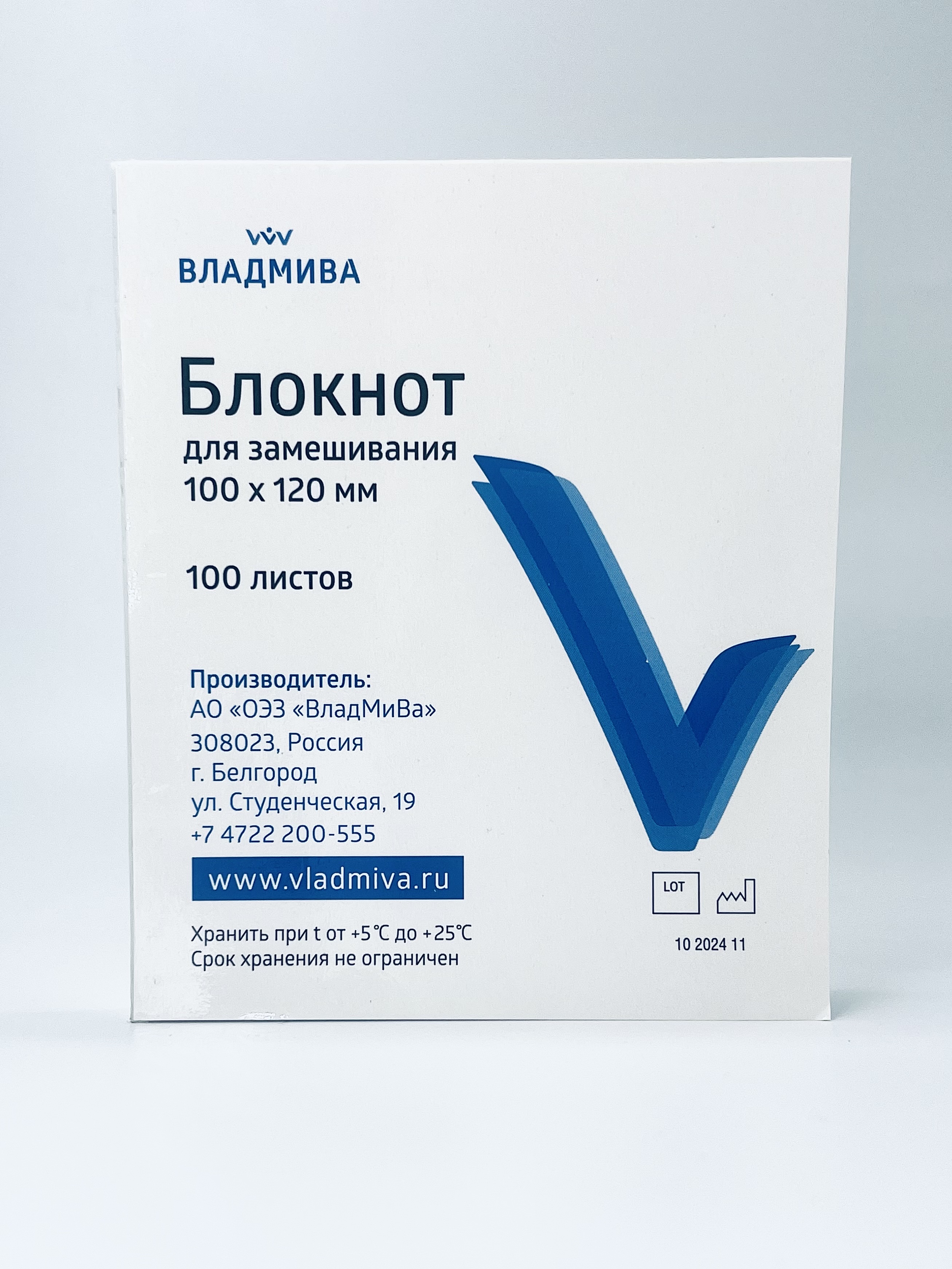 Блокнот для замешивания сыпучих, жидких, пастообразных веществ 100 листов 100х120 мм. Блок листов, покрытых пластиком. Отрывные одноразовые листочки легко удаляются. Обеспечивают чистоту рабочего пространства.