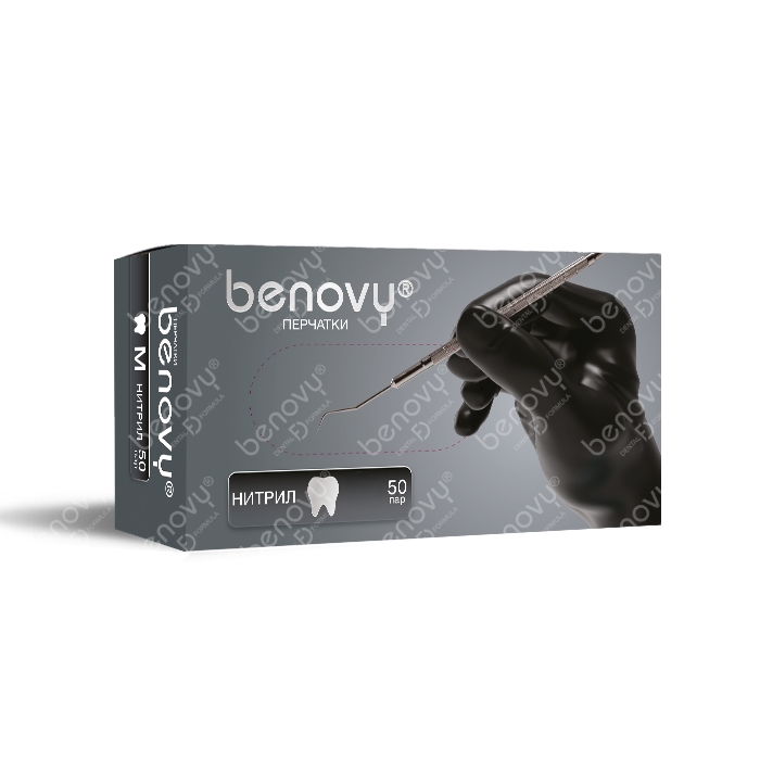 Перчатки нитриловые черные BENOVY Dental Formula MultiColor (размер M, 50 пар)
