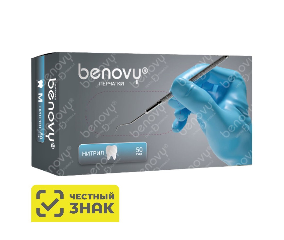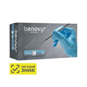 Перчатки BENOVY нитриловые, ГОЛУБЫЕ, текстурированные на пальцах, 3,0гр, S (50пар) М+