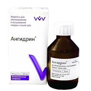 Легко испаряющаяся жидкость «Ангидрин» содержит биосовместимую добавку, которая запечатывает и защищает дентинные канальцы, образуя тонкий мономолекулярный барьер, поэтому после обработки культи «живого» зуба перед установкой коронки у пациента снижается болезненное ощущение от фиксирующего цемента. Не содержащая диэтилового эфира и этанола жидкость не оказывает вредного воздействия на окружающие мягкие ткани, не вызывает болезненности при попадании на слизистую поверхность полости рта.